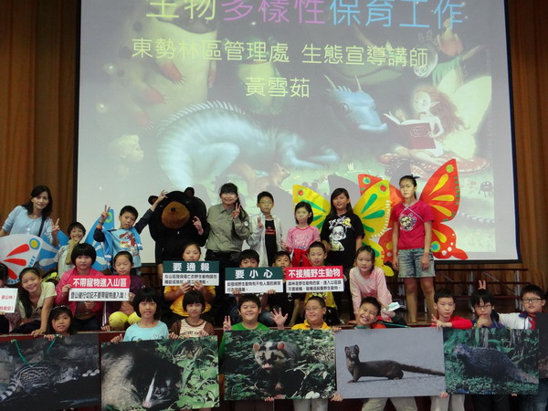 東勢林區管理處於今年五月起,啟動臺中市國民小學「生物多樣性保育校園巡迴列車」;課程內容包括:生物多樣性概念、外來種的威脅、認識野生動物狂犬病防疫工作,餵食及放生對野生動物保育影響以及正確面對野生動物的方式,避免人熊衝突及人熊共生安全宣導等,內容精彩豐富,讓學生能在短時間內有效率學習正確生物多樣性保育觀念。