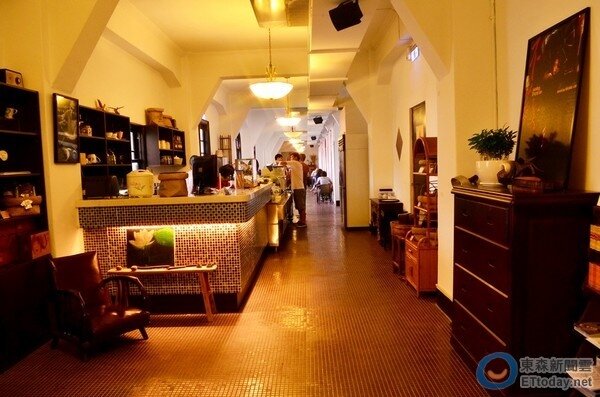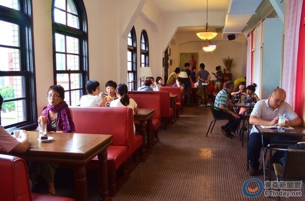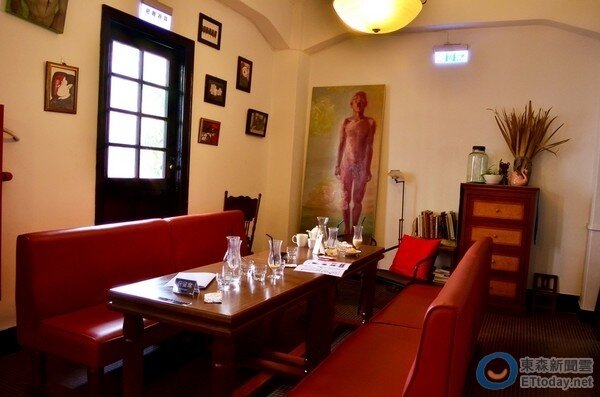 有別於第一間店「蔡李陸咖啡商號」,這裡完全融入建築物主體,老舊的櫥櫃、沙發椅、時鐘,搭配上一整排的拱型窗框,以及紅色的充滿懷舊感的「火車座椅」,教人不靜下心來也難。