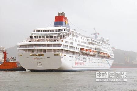 寶瓶星號昨在雨中重返基隆港,揭開基隆港郵輪季。(張謙俊攝)