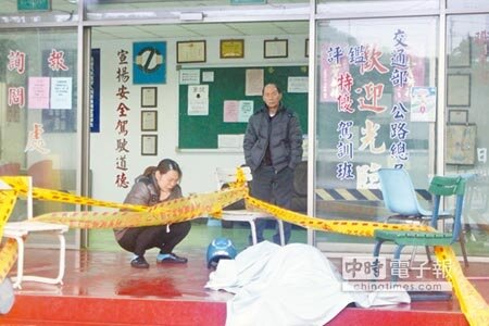 警方在現場拉起封鎖線,死者上下班代步的紅色機車仍在發動中,頭燈還開啟著,安全帽也掉在地上。家屬趕到現場指認,並詢問警方說「我可以看嗎?」見到失溫死亡的謝女,家屬忍不住痛哭失聲。駕訓班何姓主任說,任職1年多的謝女,平時負責櫃台工作,工作態度認真,經調閱監視器畫面,研判謝女下班關閉鐵捲門後,發動機車正準備離開時,發覺鑰匙遺忘在辦公室桌上,匆忙跑回辦公室,疑似有滑倒才被鐵捲門壓住,至於意外真正原因,仍待警方調查。