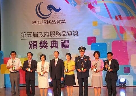 高雄市立圖書館榮獲第五屆政府服務品質獎,是政府機關推動服務品質的最高榮譽獎項(右一為高市圖館長施純福)。〔圖/高雄市立圖書館提供〕