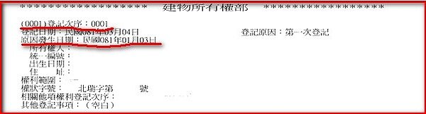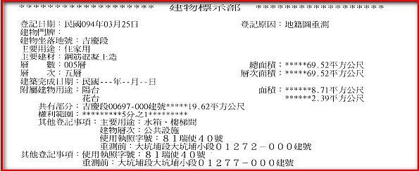 建物所有權部揭露內容(截取自瑞芳地政事務所)