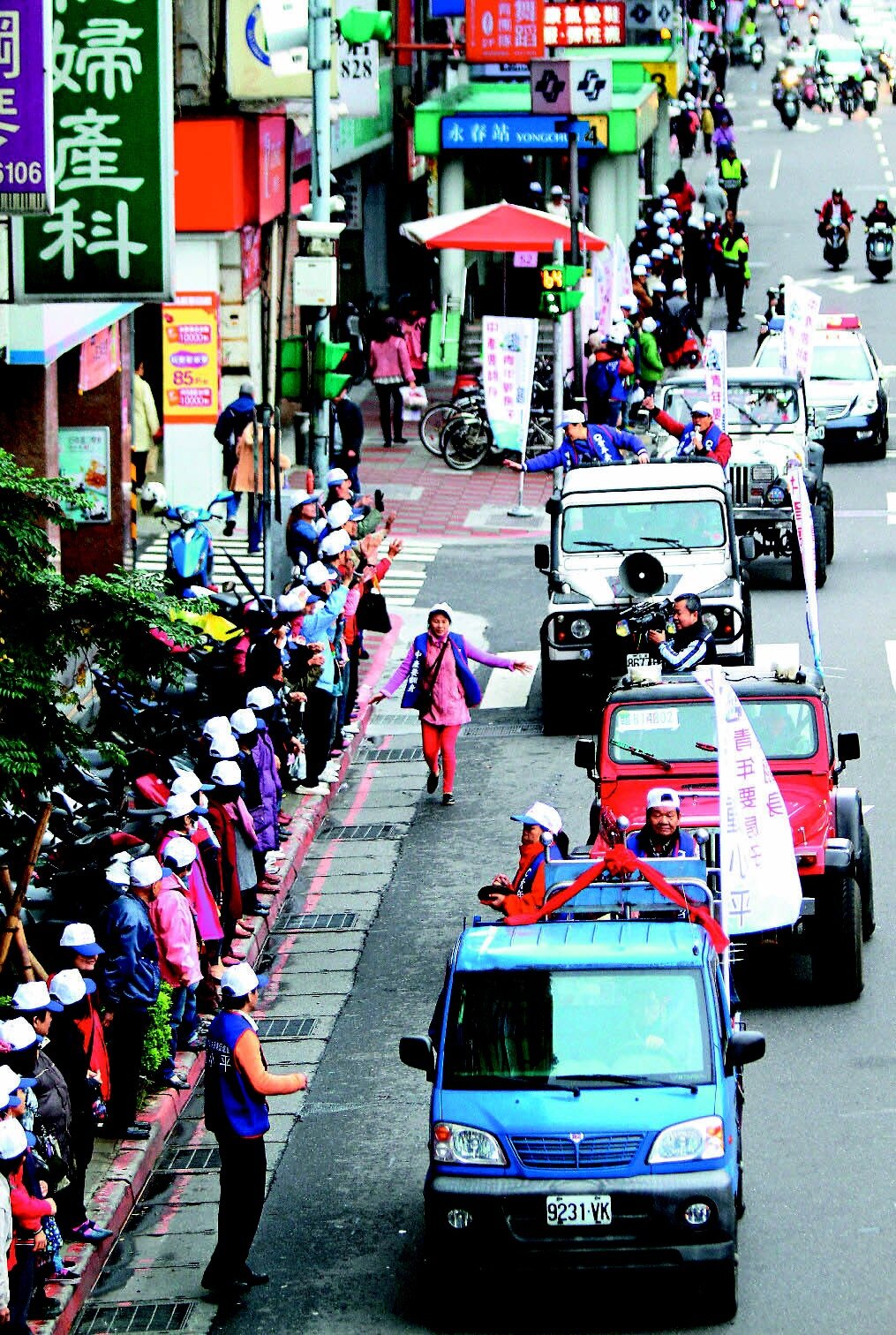 昨天的牽手活動沿忠孝東路進行,自林森南路口起到研究院路口止,經過中正、大安、信義及南港等區,全長13公里;鍾小平還花15萬元請直升機空拍,要營造數萬人心手相連的氣勢。