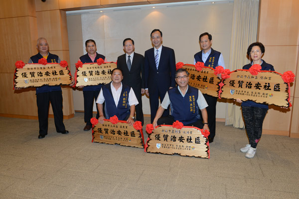 獲頒「優質治安社區」認證標章表揚的分別有三重區光輝里、板橋區社後里、班峽區溪東里、蘆洲區水湳里、中和區嘉慶里、永和區得和里、樹林區樹興里、鶯歌區鳳祥里、五股區興珍里、三重區光正里、中和區中安里及新店區日興里等12個績優治安社區。