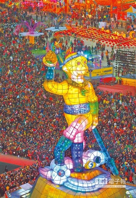 楊兆元桃園市舉辦台灣燈會,兼具國際及族群融合精神,陸港澳及日本等9組參展,逛完宛如到東亞玩了一趟。燈會好看更好玩,不少互動裝置,如澎湖擲筊乞龜、金門擲骰博餅,都能換伴手禮,科技區更能拍即時影像上傳,增添趣味。228連續假期湧入大量人潮,228當晚更創下27年來入園最多369萬餘人次紀錄,昨延長開放至晚間12時,並加開100車次接駁車。圖為主燈秀點亮,吸引上萬民眾聚集觀賞。