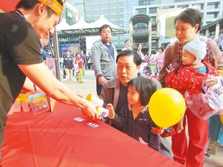 機關團體舉辦活動,常以環保杯當贈品,反而造成「不環保」;圖為新北市府日前在市府廣場舉辦萬聖節活動,民眾排隊兌換環保杯。(記者葉德正/攝影)
