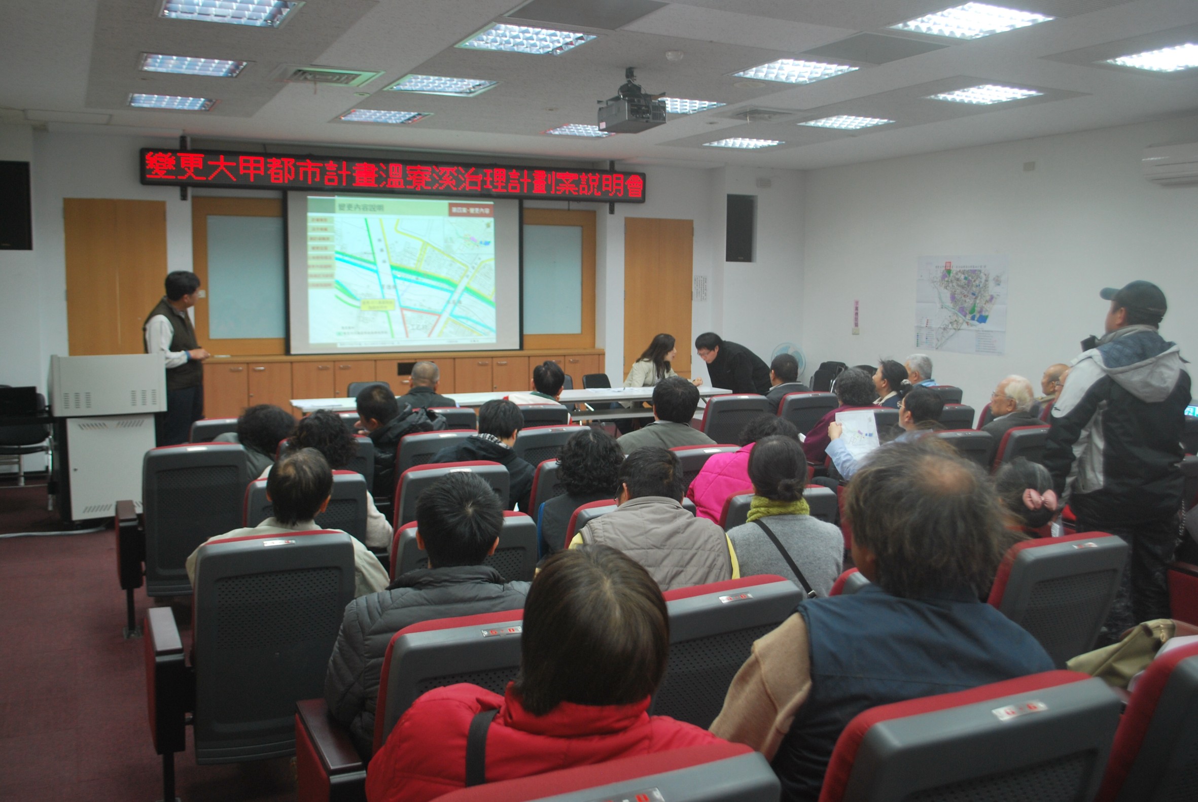大甲都市計畫案(配合整治溫寮溪),5日假大甲區公所舉行,民眾對變更時,自已應有權益是否受損,問之甚詳。〔記者陳榮昌/攝〕