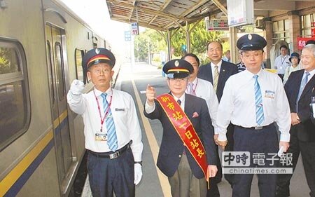 「台日32同名車站」活動選出32個台灣及日本同樣名稱的火車站,進行交流,25日一早在台北車站舉行出發儀式後,旋即安排同名的日本「一日站長」前往台灣各地車站參訪,從日本遠道而來的川勝新市先生、大橋遼太先生,分別擔任台南「新市」與「大橋」兩站的一日站長。