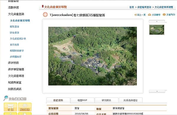 三年前,縣政府將老七佳聚落列入世界遺產潛力點,但聚落石板屋遭風災侵襲損壞嚴重,石板屋聚落文化協會今年向文建會申請經費搶修還製作部落誌;理事長趙秀英表示,老七佳石板屋全台保存最完整,舊時傳統人文也沒改變,為避免遭人破壞自然景觀,部落志工會定期巡邏。