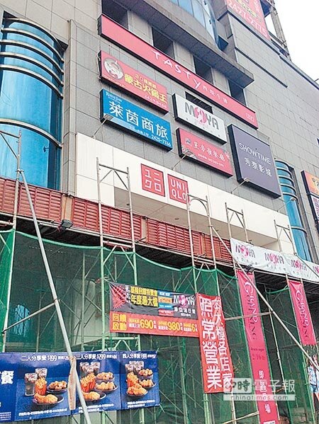 麗榮皇冠大樓去年10月發生岩磚砸死人的意外,因為檢察官尚未偵結,大樓至今保持事發時的樣子。(記者劉育辰/攝影)