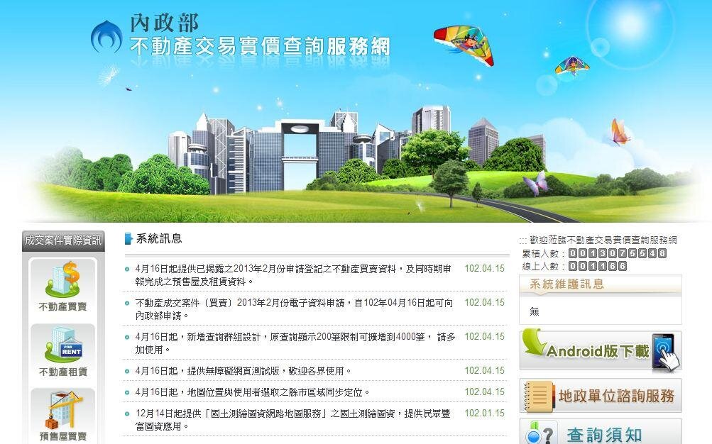 行政院臨時院會昨天通過地政士法修法覆議案,將於呈請總統核可後移請立法院覆議。(翻攝自/內政部動產交易實價查詢服務網)