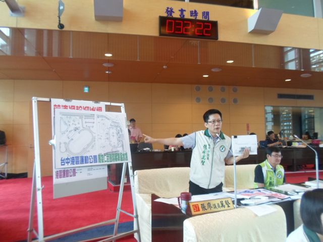 張廖萬堅議員要求運動公園改善設施。(林盈雄攝)