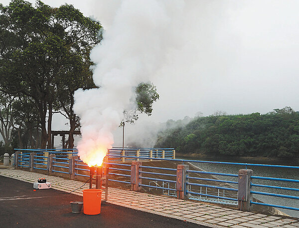 水情持續吃緊,鋒面昨天報到,苗栗地區上午5點多下了一陣約2毫米的小雨,無助於水庫蓄水進帳,水利署指示苗栗農田水利會,配合雲層等氣象條件,下午3點、4點分別在明德水庫施放2支氯化鈣焰劑。
