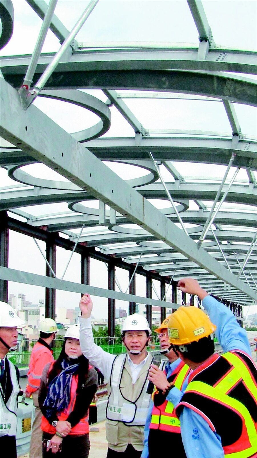 許文貴表示,台中車站現進行地下室施工,其餘9座車站在做月台層及頂棚桁架施工,已可見外觀雛形,軌道工程也配合橋梁推進施工中。