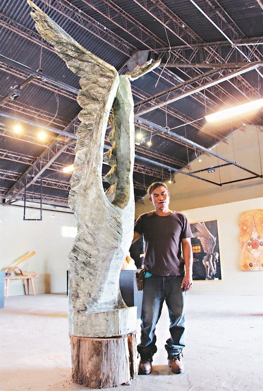 希巨三年來透過木雕創作,詮釋客死他鄉的老兵靈魂,身上帶著翅膀想回家,作品展示於都蘭糖廠工作室後,數次於外縣市巡迴展出,目前在清華大學展出。
