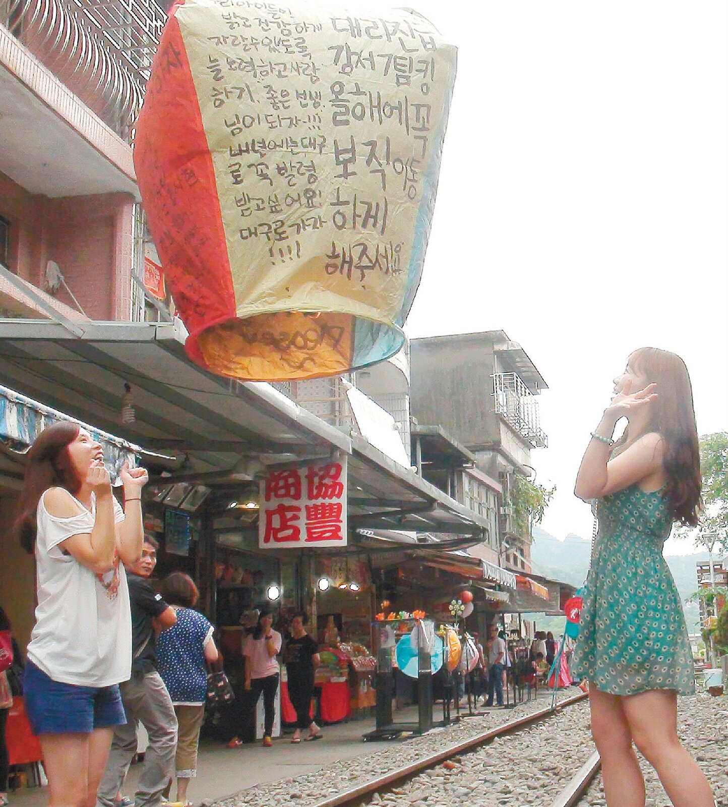 前兩天平溪一帶開始下雨,因此商家不放天燈的自律協定也跟著解除,十分寮昨天已有不少遊客來放天燈。(記者郭建伸/攝影)