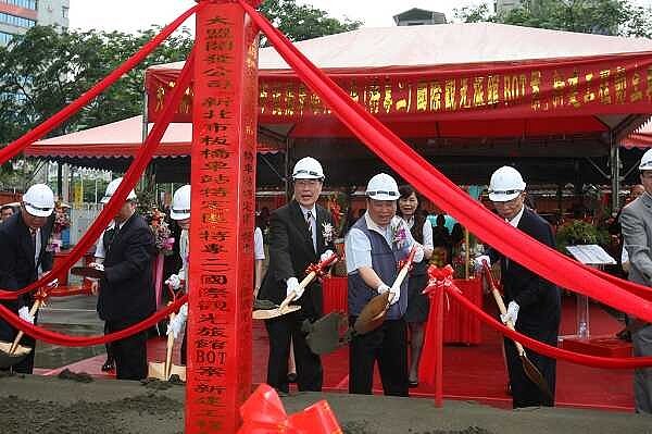 繼淡水漁人碼頭觀光旅館後,新北市首座以天燈造型的國際觀光旅館,22日於新板橋車站特定區(特專二)舉行開工動土典禮,副市長李四川、議長陳幸進與大盟開發董事長林鴻道及多位議員等出席動土儀式。大盟開發將投入80億元,在四鐵共構的板橋車站旁興建800間客房的國際觀光旅館,以及292間的商務旅館與多功能宴會廣場。