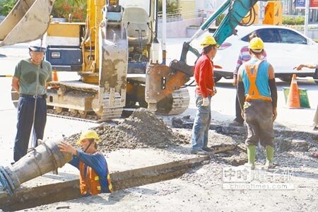 自來水公司第九區管理處正於花蓮市林森路進行自來水管汰換工程,除改善配水管線,也將老舊鉛管一併汰換,但23日中午承包商在測試水壓時,突發生爆管意外,回填土石瞬間噴發數米高,「碎石雨」擊破附近車輛擋風玻璃,幸好沒有人員受傷。