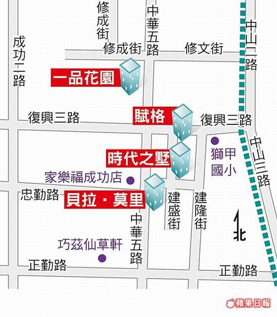 張東森指出,正勤路周邊有「正勤」與「獅甲」2個國宅社區,屋齡10~20年間,主力坪數38~42坪、3~4房格局,主力每坪10~12萬元。施心騏表示,別墅產品集中在修成街、修成南街與修文街,屋齡均在5年內,且多數均有電梯。主力地坪30坪左右,主力總價2400~3000萬元。