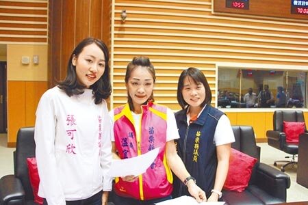 「議會SHE」張可欣、溫宜靜、張佳玲(左至右)24日3人聯合質詢,初試啼聲引發關注。(何冠嫻攝)