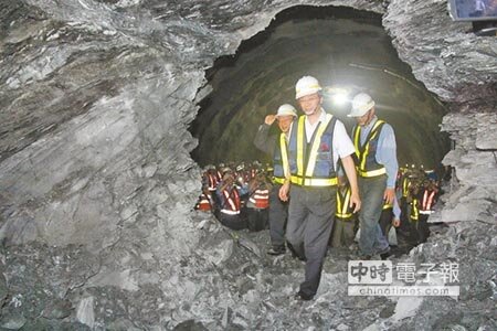 蘇花改工程昨爆破觀音隧道北上線最後一個工作面,宣告7.9公里長的觀音隧道北線全線貫通,邁入全新里程碑,行政院副院長張善政親赴現場見證這歷史性一刻,並於爆破貫通後,彎腰撿拾一顆貫通石準備送人。