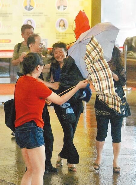 20日入夜後,台北地區間歇性大雨和風勢增強,行人的雨傘頻開花。(趙雙傑攝)