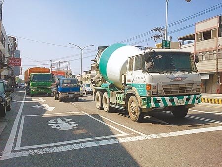 因應即將到來的新社花海活動,交通局將豐原豐勢路往石岡方向,與萬順一街交叉口前後1.5公里長的機車道塗銷成混合車道,機車被迫與砂石車、連結車等大型車爭道,機車族罵聲不斷。(記者游瓊華/攝影)