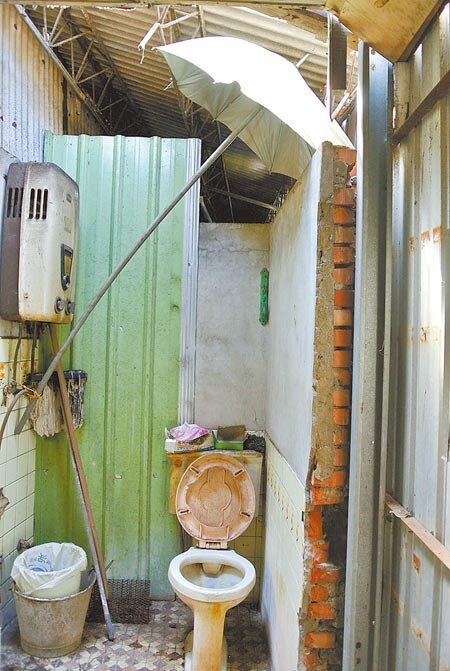 相較有「眷村」可住的榮民,楊翁自嘆沒這麼幸運,住在不及10坪大的平房由簡易磚瓦搭建,歷經半世紀早已破舊不堪,屋頂浪板更因多年颱風摧殘,致破損不堪,他形容「若下小雨,就會漏水;若下大雨,就會像瀑布」。