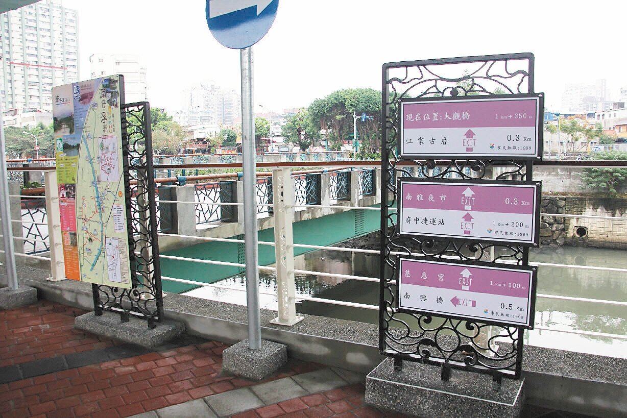啟用典禮在即,工作人員昨天加緊最後整理工作,沿岸設置導覽告示牌,結合周邊景點、古蹟、人文、生態,指引民眾沿湳仔溝進行「枋橋古城」探索、浮洲人文閱讀、大漢溪生態遊廊,要讓昔日髒臭的「黑龍江」脫胎換骨。