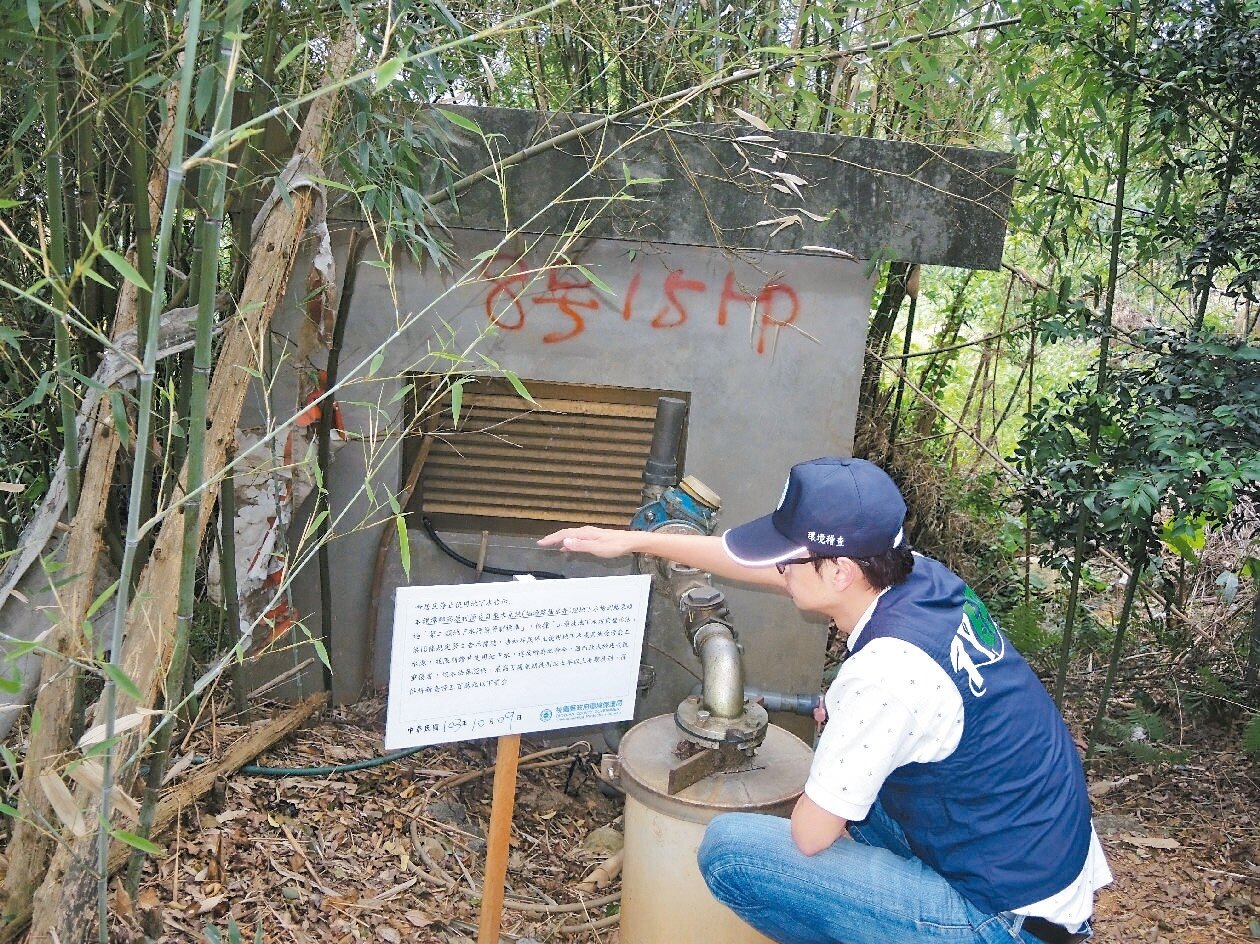 龍潭鄉高原村福源路簡易自來水井遭到「1,1-二氯乙烯」汙染,桃園縣環保局等相關人員昨天前往關閉抽水開關,豎立告示牌要求居民停止使用。