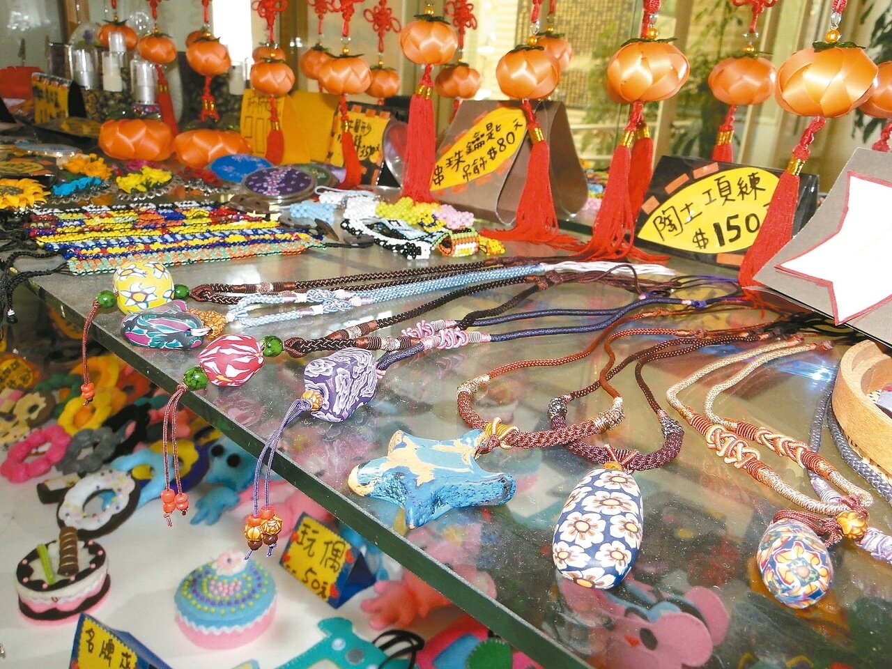 最近也結合許多手工藝的課程,輔導少女們做成各式精巧的手工藝品,包括不織布面紙盒、甜甜圈手環、軟陶項練等,不一而足,從30元一個的竹編花盤到250元的手工置物箱,可說物美價廉。