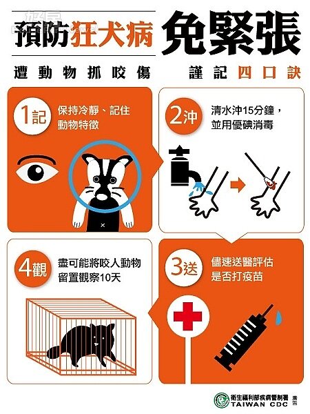 三、根據國外的防疫經驗顯示,兒童或老人如遭動物抓咬傷,因未警覺其風險而無立即就醫,亦可能造成狂犬病發病之憾事,因此家屬對於家中成員之關懷更為重要。