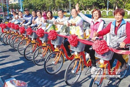 「真的假的?」副市長高宗正、交通局長趙紹廉、市議員黃桂蘭、李坤城、李倩萍等人昨日出席啟用典禮,吸引不少路人好奇觀望、拍照,甚至現場心急辦理註冊,搶先試騎。