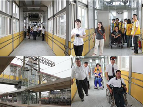 其一是月台無障礙電梯和將近60公尺長的跨站天橋,共有3座升降電梯,並且利用跨站式天橋連結月台及前後站,不僅可供輪椅族旅客方便選擇由何處進站搭車,更能增加持有通行證的民眾通行前後站的便捷性。