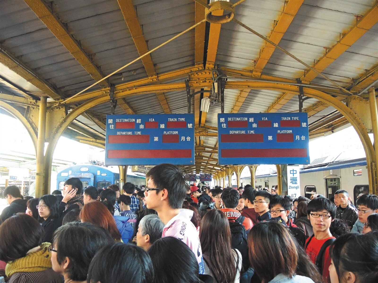 二二八連假首日,陸空交通都「大誤」。昨天上午八時許,台鐵一列太魯閣號行經中壢埔心間,列車集電弓扯壞長達四公里電車線,預估今晨才能恢復正常通車,造成全天列車嚴重誤點,五萬多名旅客行程受阻。也是近六年來,台鐵出包最嚴重的誤點事故。