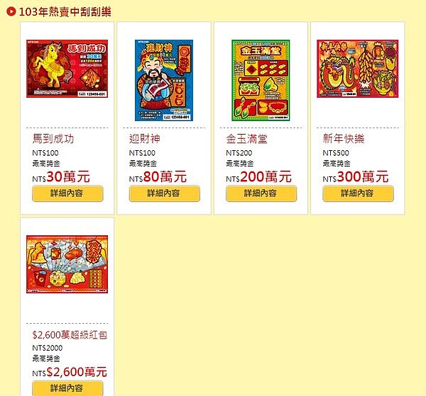 台彩一直希望提高刮刮樂占整體公益彩券銷售金額比率,2013年電腦型彩券賣出732億元,立即型(俗稱「刮刮樂」)賣出501億元,後者占比41%,仍有提升空間。