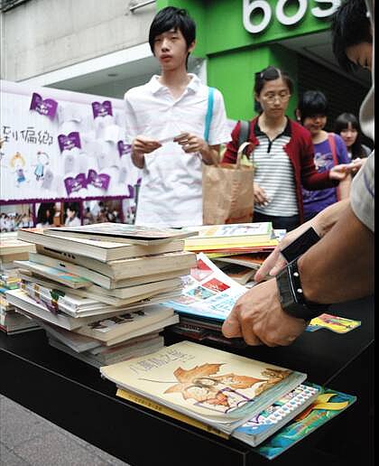 透過為樹捐書、二手書的交流行動從資源分享、再利用與閱讀分享的概念。(記者吳世傑攝)