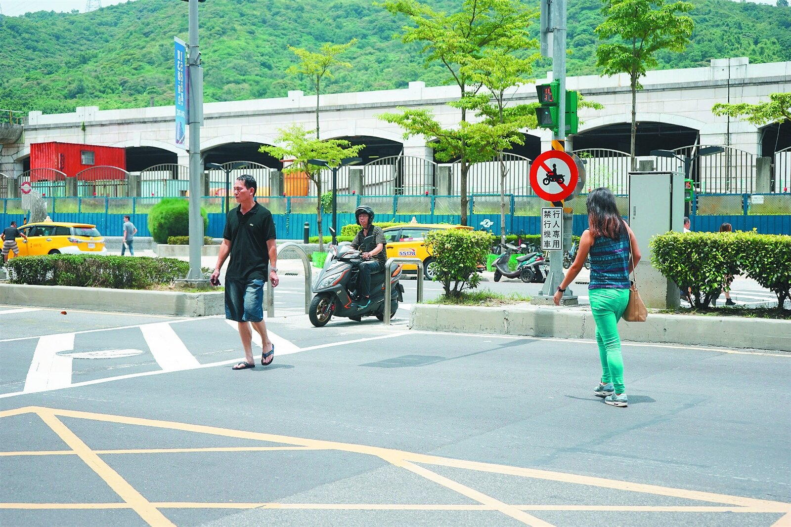 交通局在該處設置了車阻,還設置禁止機車通行標誌,但違規機車族還是很多,當地居民廖小姐表示,「每次尖峰時刻要過馬路,都會有一大堆機車跟行人搶道,路口沒有多寬,還要硬擠。」