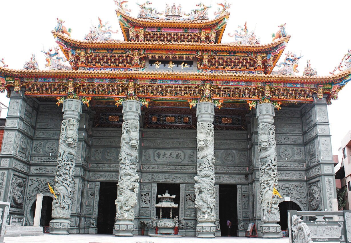 張建隆表示,仁壽宮新廟樓高七層樓,內外雕塑精緻,尤其廟門前的四根大龍柱,總價近千萬元,由信徒捐獻塑成,每根龍柱高達12公尺、直徑2公尺,是全縣最高大、也可能是全台最高龍柱,十分壯觀。