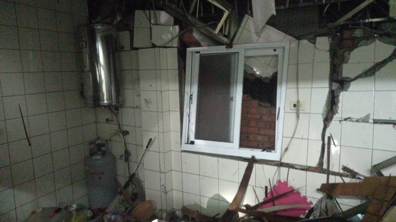 南市東區裕農路762巷內公寓18日凌晨發生瓦斯氣爆,附近住戶門窗被震碎。記者黃宣翰/攝影