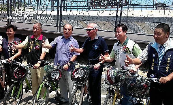 耗資四千萬元開闢的大甲籃帶海域自行車道,29日市長胡志強、民代與各界在興奮的氣氛中剪綵啟用,胡市長表示下個目標希望接續往北拓展4公里到苗栗苑裡、往南10公里到高美濕地,打造最優質的自行車道。(圖/記者陳榮昌攝)