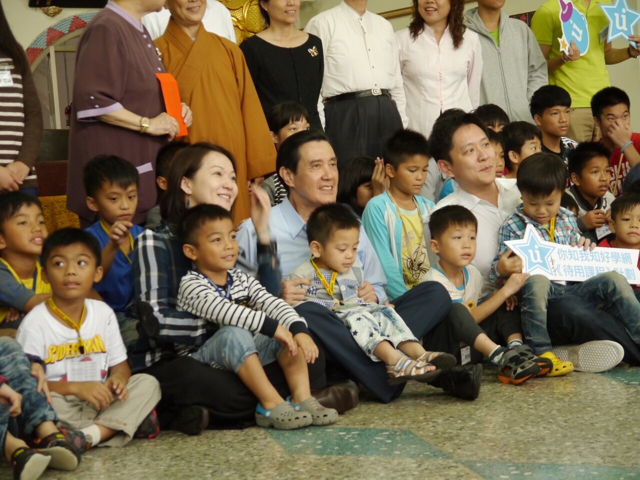 總統馬英九到禪光育幼院關心偏鄉教育,認識由「好學網」推出的待用課程。在孩子們笑聲感染下,他也露出笑靨,與小朋友親切互動、熱情擁抱,並化身為「英九同學」,一起捏粘土創作。