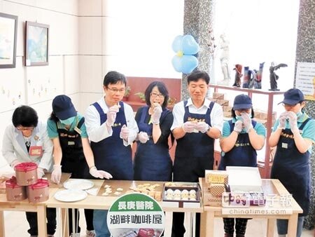 湖畔咖啡屋是市府勞工局委託高雄長庚醫院設置,目前安置11名身心障礙者,其中多為思覺失調(精障)者,教導他們製作牛軋糖、牛軋餅及三色酥等伴手禮,同時也訓練接待及服務客人,讓他們從職訓中重拾信心,為重回社會作準備。