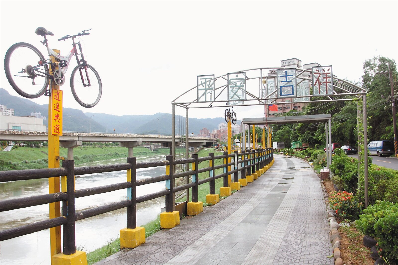 汐止區江北里位於基隆河北岸,河濱步道雖然不長,江北里長謝祚敏利用資源回收物,動員志工,精心布置了1百多公尺長的景觀,涼亭還可回收雨水,作為澆灌花草之用,成為里民休憩的好去處。