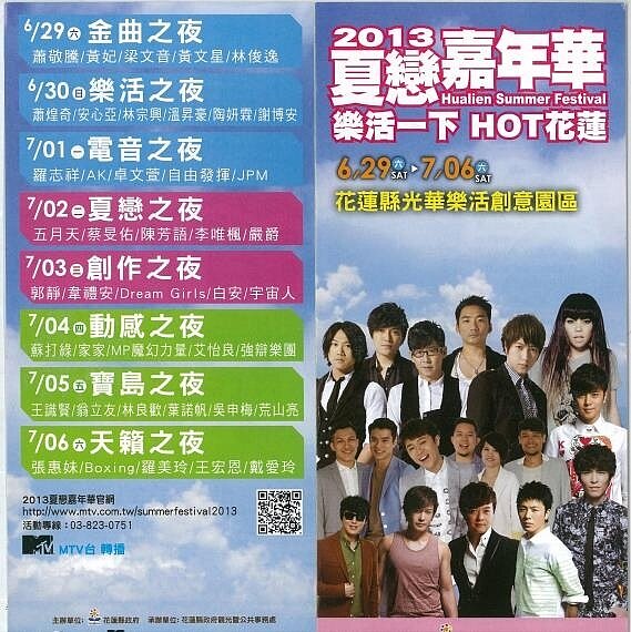花蓮縣政府廣邀國內外好朋友到花蓮開心放暑假,今夏的花蓮不僅有為期9天巨星熱力接唱的「夏戀嘉年華」,更有「花蓮翱翔季」、「金針花季」、「原住民豐年祭」、「洄瀾灣風帆節」及客家「鼓王爭霸戰暨鼓藝饗宴」等涵蓋陸、海、空3D觀光遊程,活動豐富多元,絕對精彩可期。