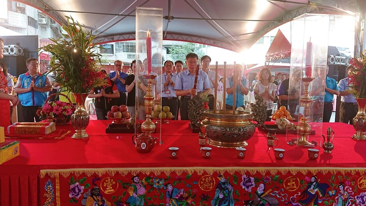台北市長柯文哲主持動土奠基典禮,與相關局處及當地里長一起祝禱工程圓滿順利。聯合報記者鍾采蓉/攝影