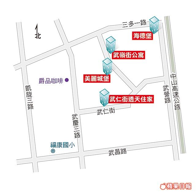粘志明說,該區大樓較少,大部分集中在武營路與三多一路,屋齡均在17~18年,主力坪數35~45坪、3~4房,每坪11~12萬元,因該區鄰近鳳山工業區,因此有許多工業區員工在武營路周邊尋找大樓產品。