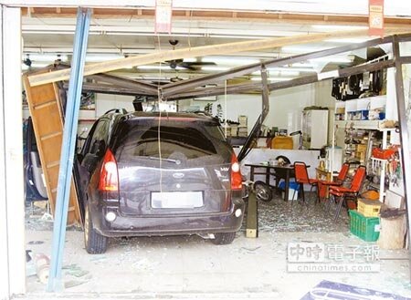 車禍發生在內埔鄉台1線延平路口,當時電動機車行張姓店員與嬸嬸倆人在店內泡茶,突然「碰」一聲巨響,自小客車突然撞破大門,整輛車衝進店裡,玻璃四散、機車也受損,兩人差一點被撞到,嚇得魂不附體。警方到場對黃姓駕駛酒測,酒測值為0,事後調查,右前輪爆胎疑似為肇事主因。