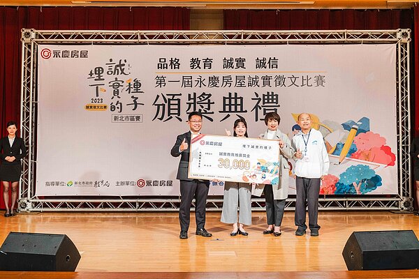 長年推廣「誠實」價值的永慶房屋,為了讓誠實價值向下扎根,在雙北市教育局的指導下,今年第一年舉辦誠實徵文比賽,首年舉辦就獲得熱烈回響,近年積極推動品格教育的新北市政府,也由副祕書長龔雅雯與新北市教育局副局長歐人豪代表出席頒獎典禮,勉勵與祝賀所有得獎學生。