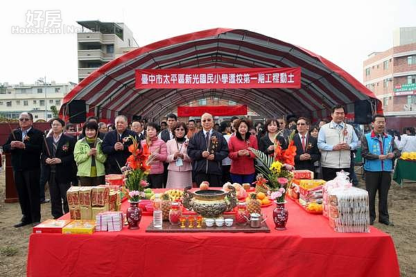 台中市太平區新光國民小學10日於新光重劃區內的預定地,舉辦「遷建校舍第1期工程動土奠基典禮」,市長胡志強與立法委員楊瓊瓔、何欣純、市議員李麗華、黃秀珠、賴義鍠、何明杰、教育局長吳榕峯、太平區長余文欽、前議員詹敏豐、當地里長等多位來賓出席動土典禮,胡志強期勉新光國小遷校完成後,能提供更優質的教育環境,以嘉惠當地學童並讓學校未來有更好發展。